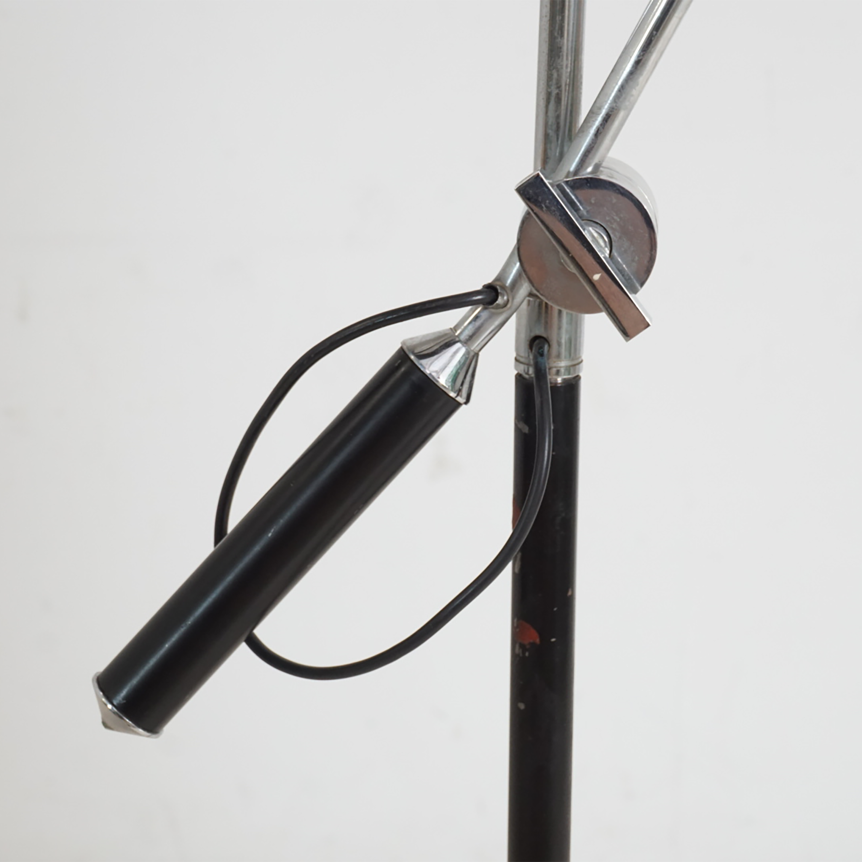 - Condition: Excellent; light oxidation metal; two small beige paint marks to lamp shade