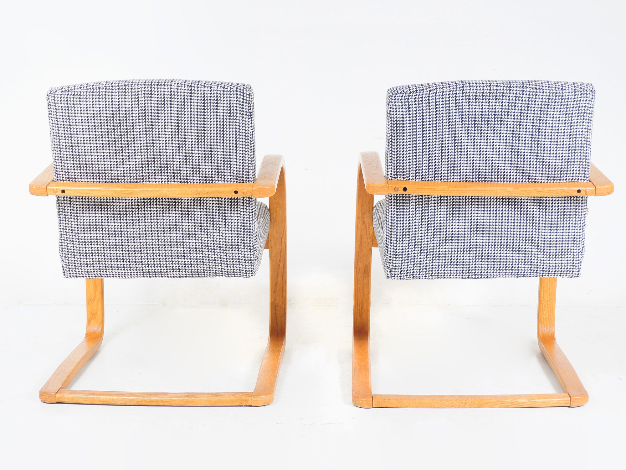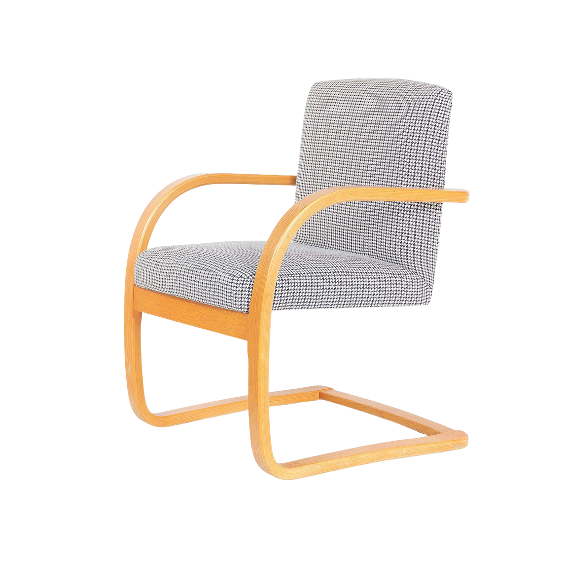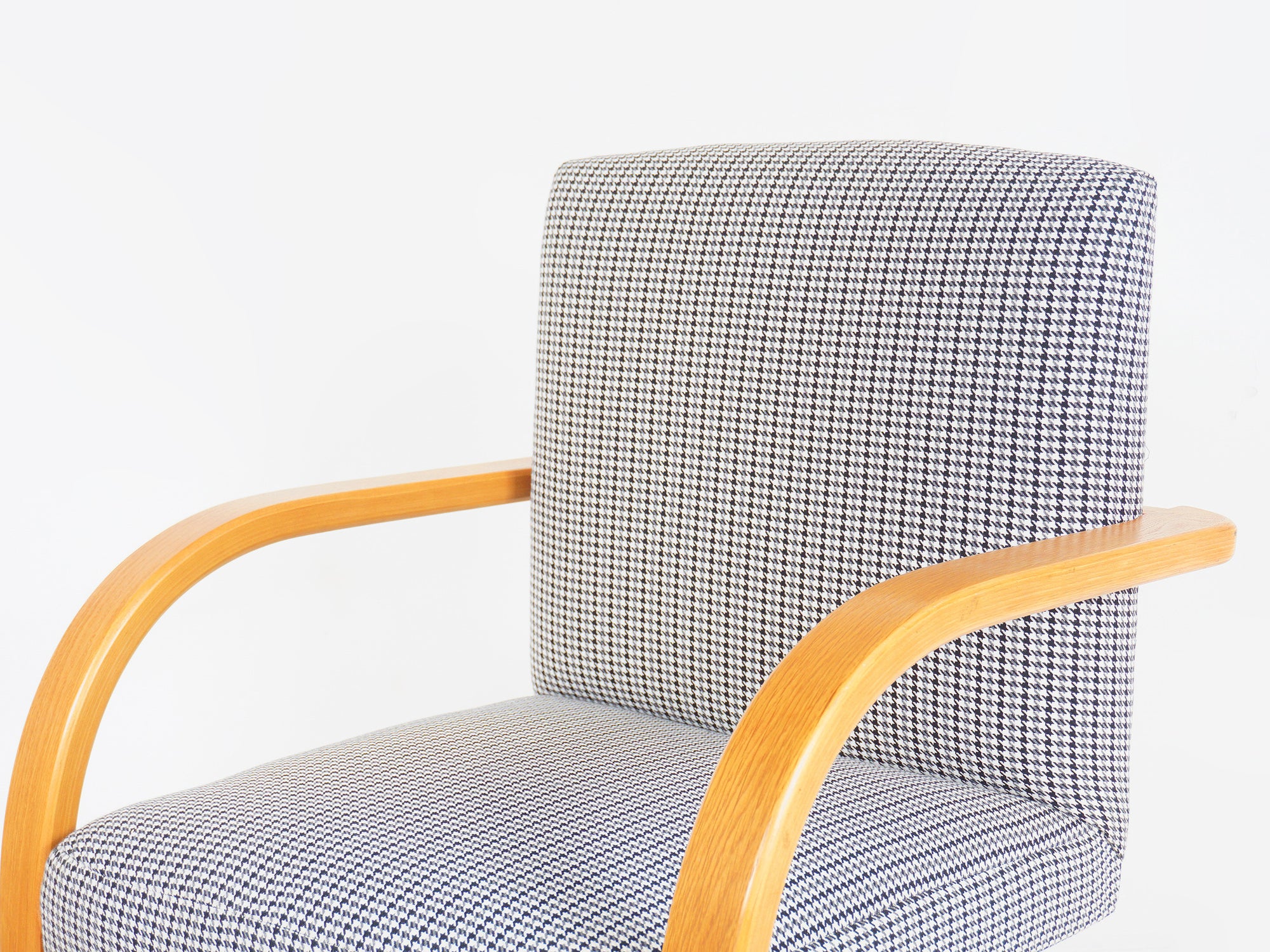 - Bent oakwood chair with gray, black and white houndstooth fabric upholstery, 1980s
