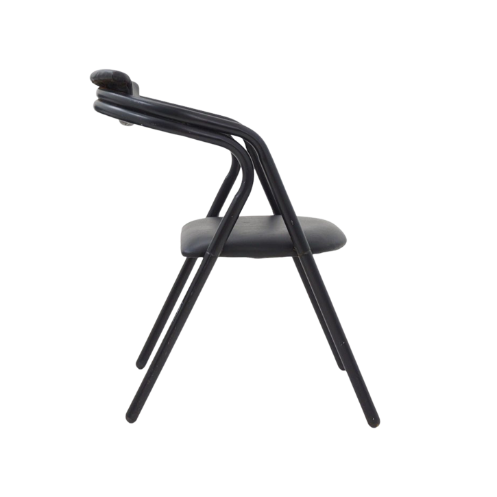 - Black naugahyde fabric; tubular metal frame