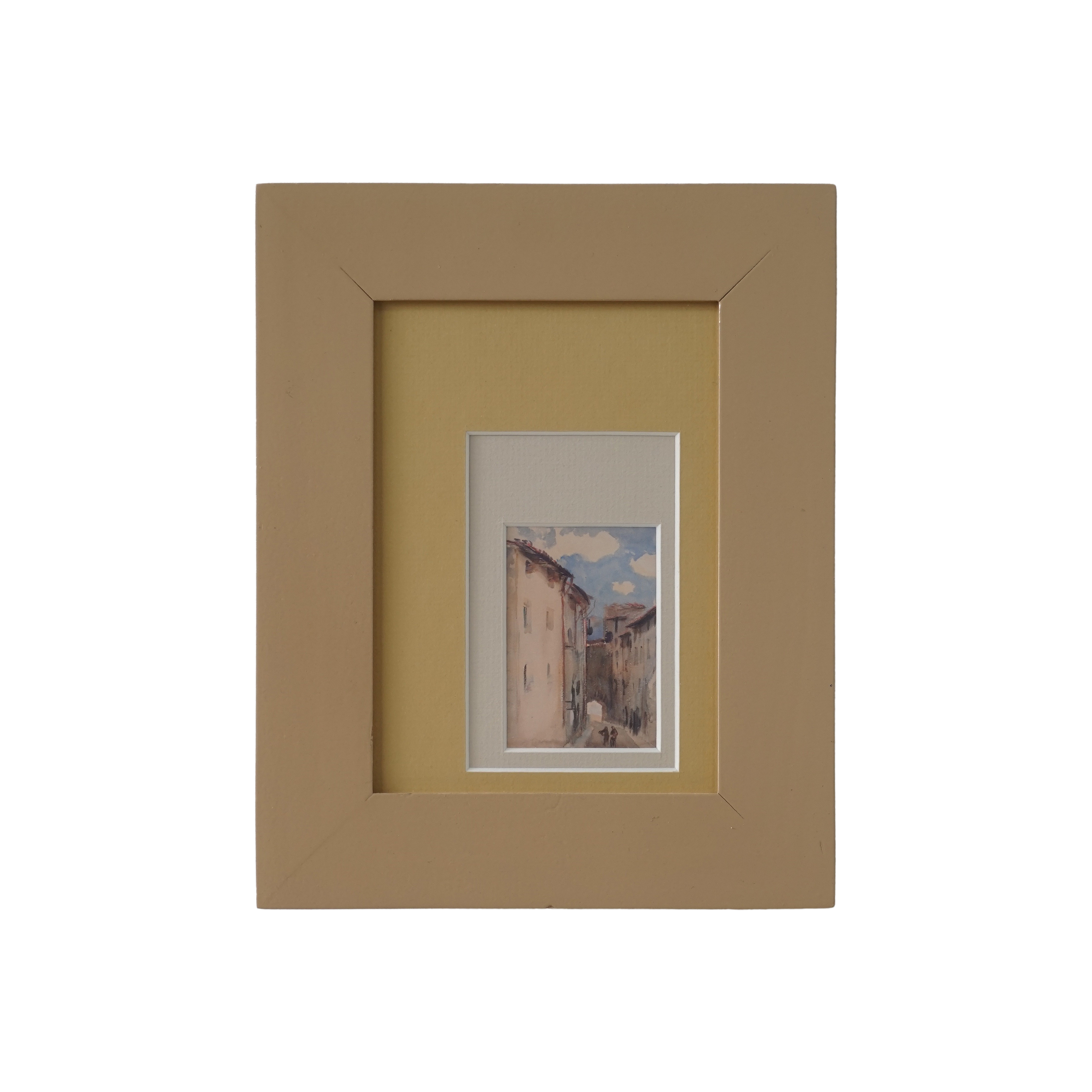 - 9.75"w, 7.75"h - Camprodon, Spain by John Singer Sargent, digitally printed on FSC certified paper, set in a vintage frame with new matting - Tabletop or ready-to-hang frame - Wood, glass, paper - Condition: Excellent