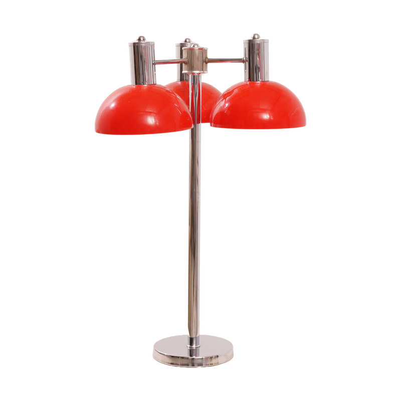- Type A plug; on/off switch on plug; accepts three standard base bulbs