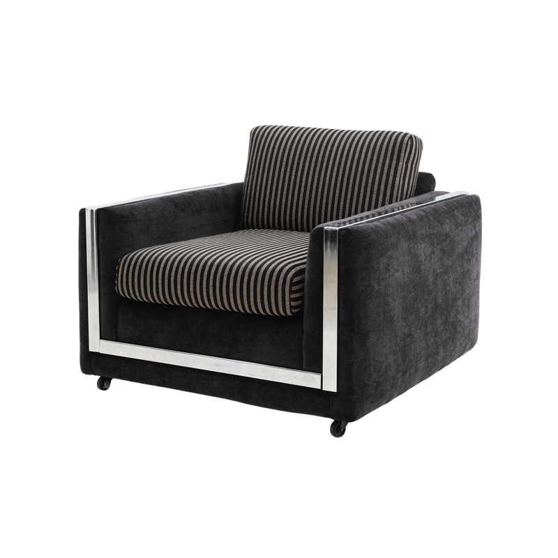 - Chrome, chenille & poly upholstery