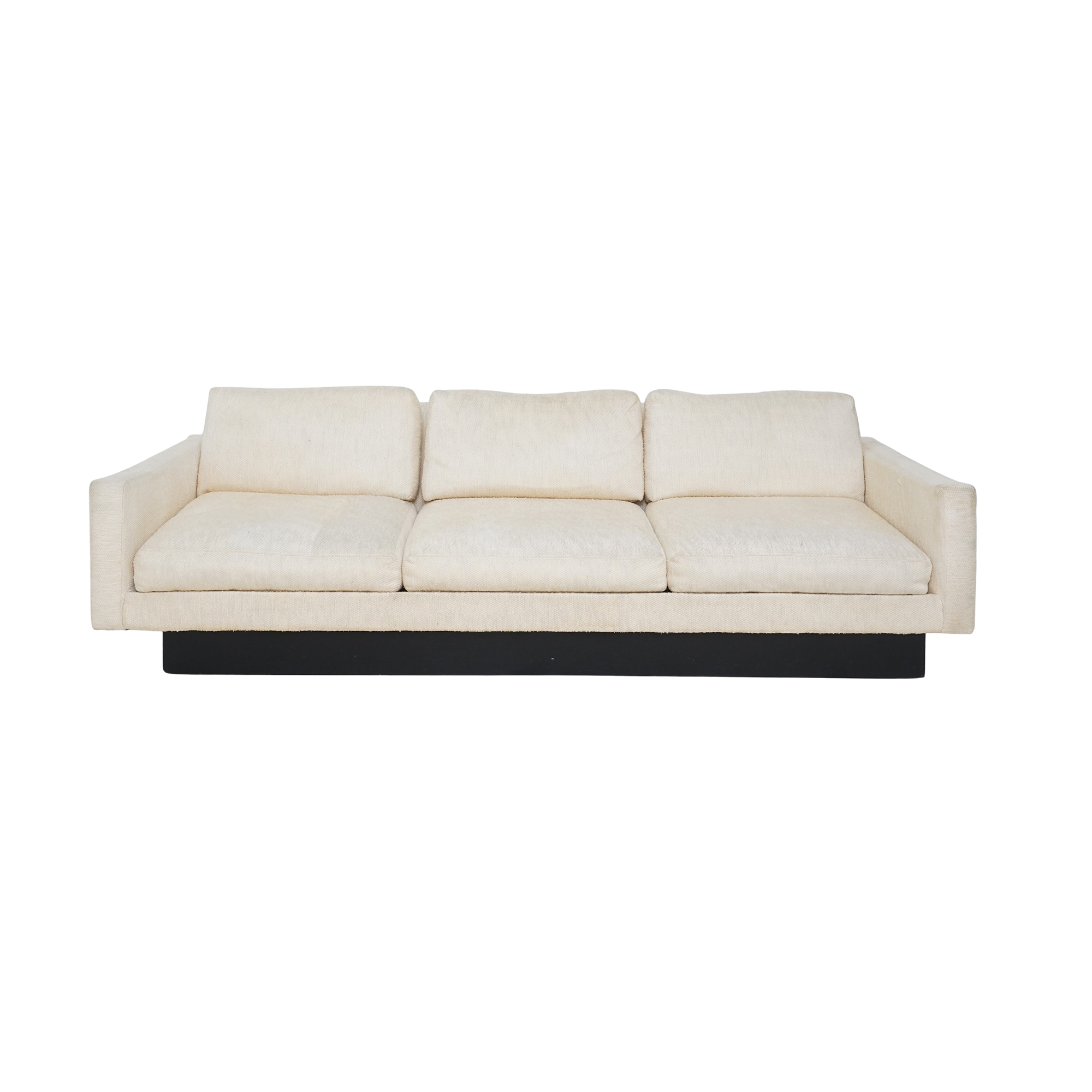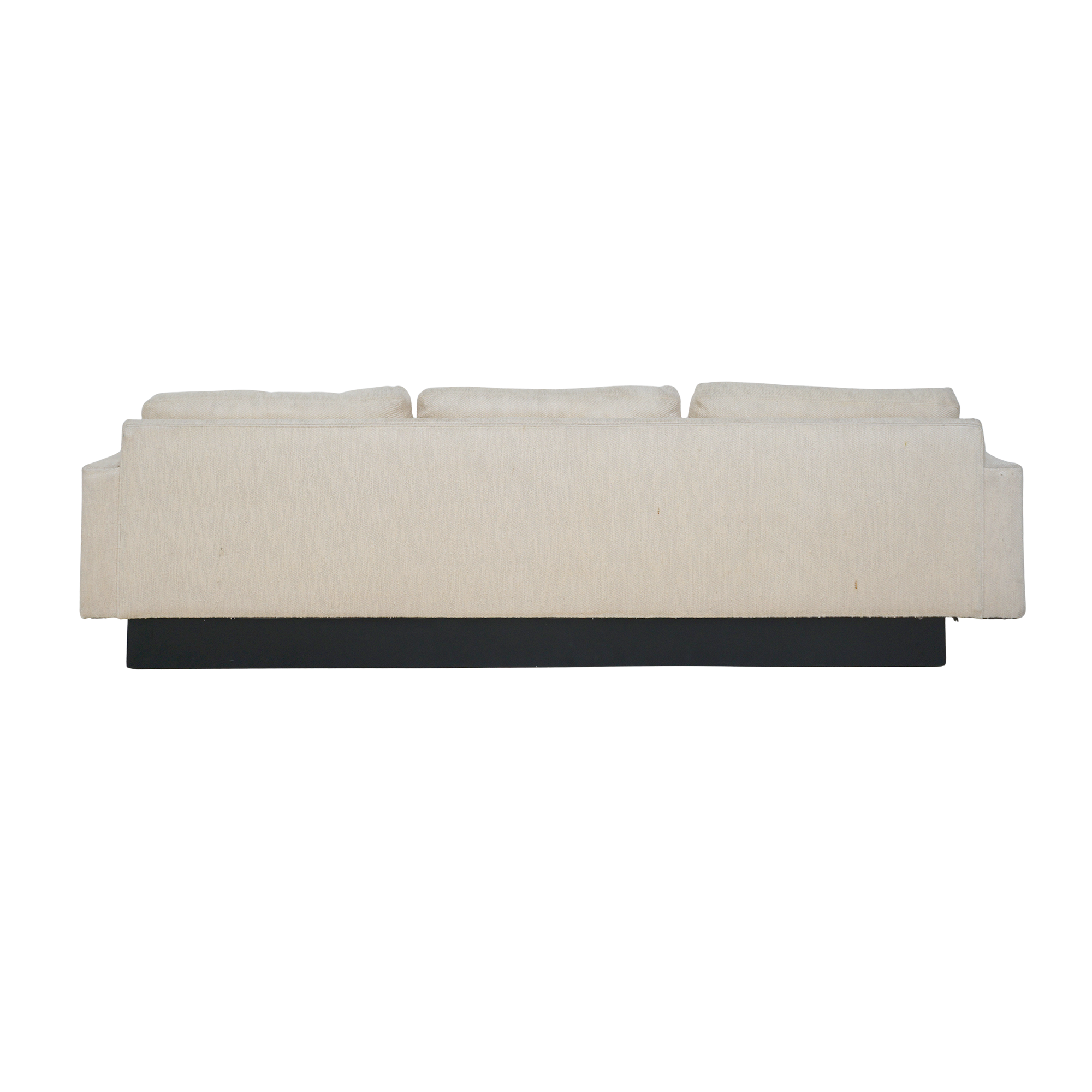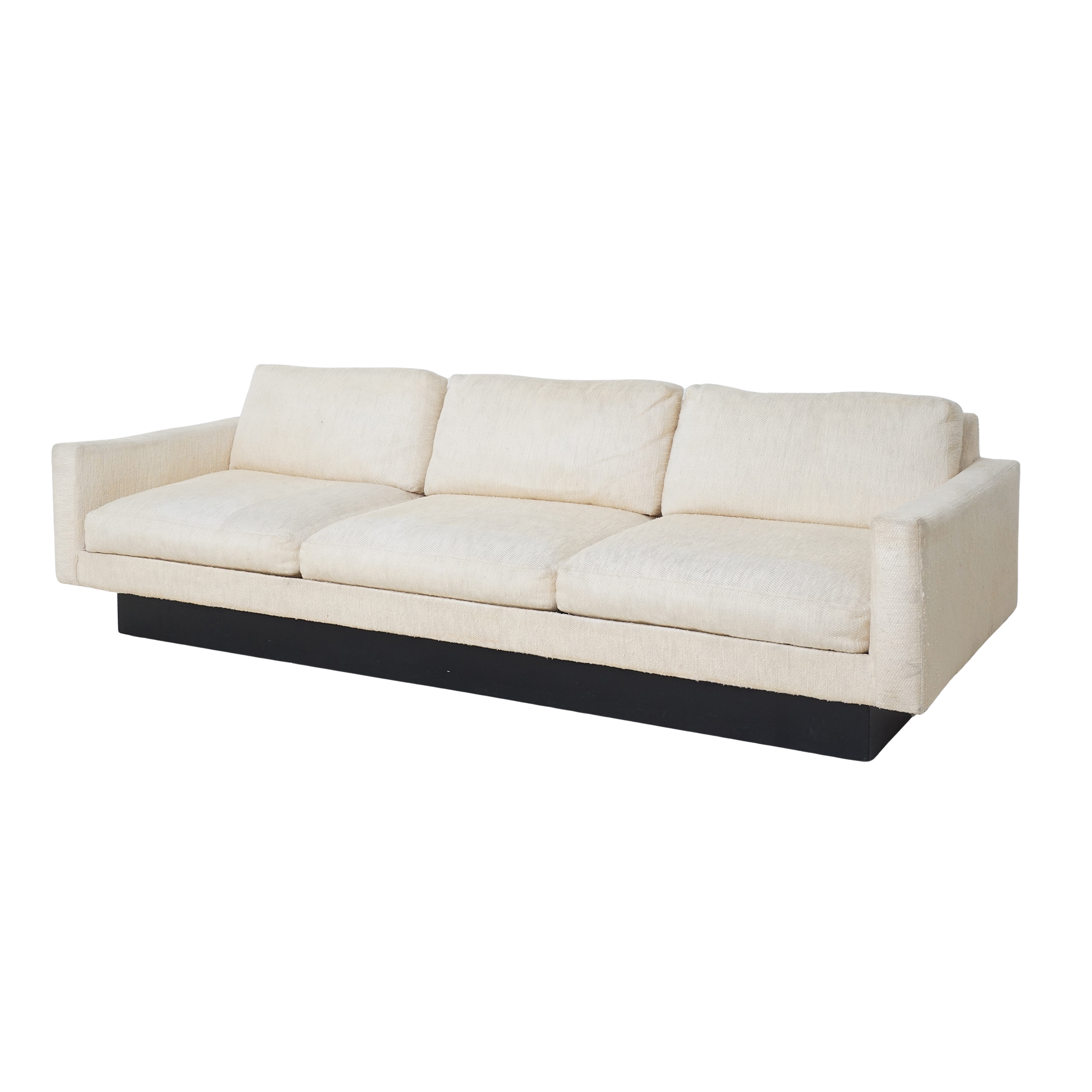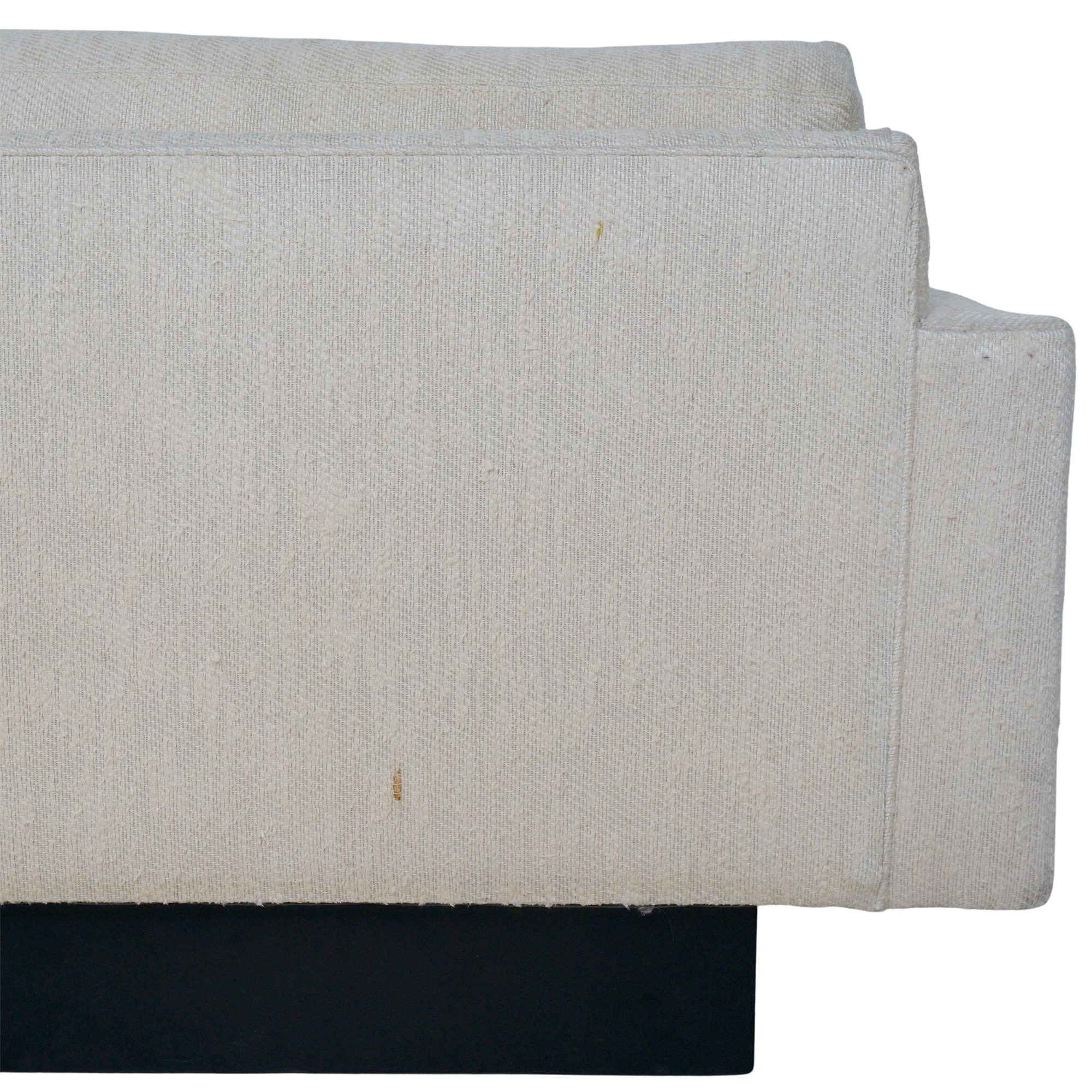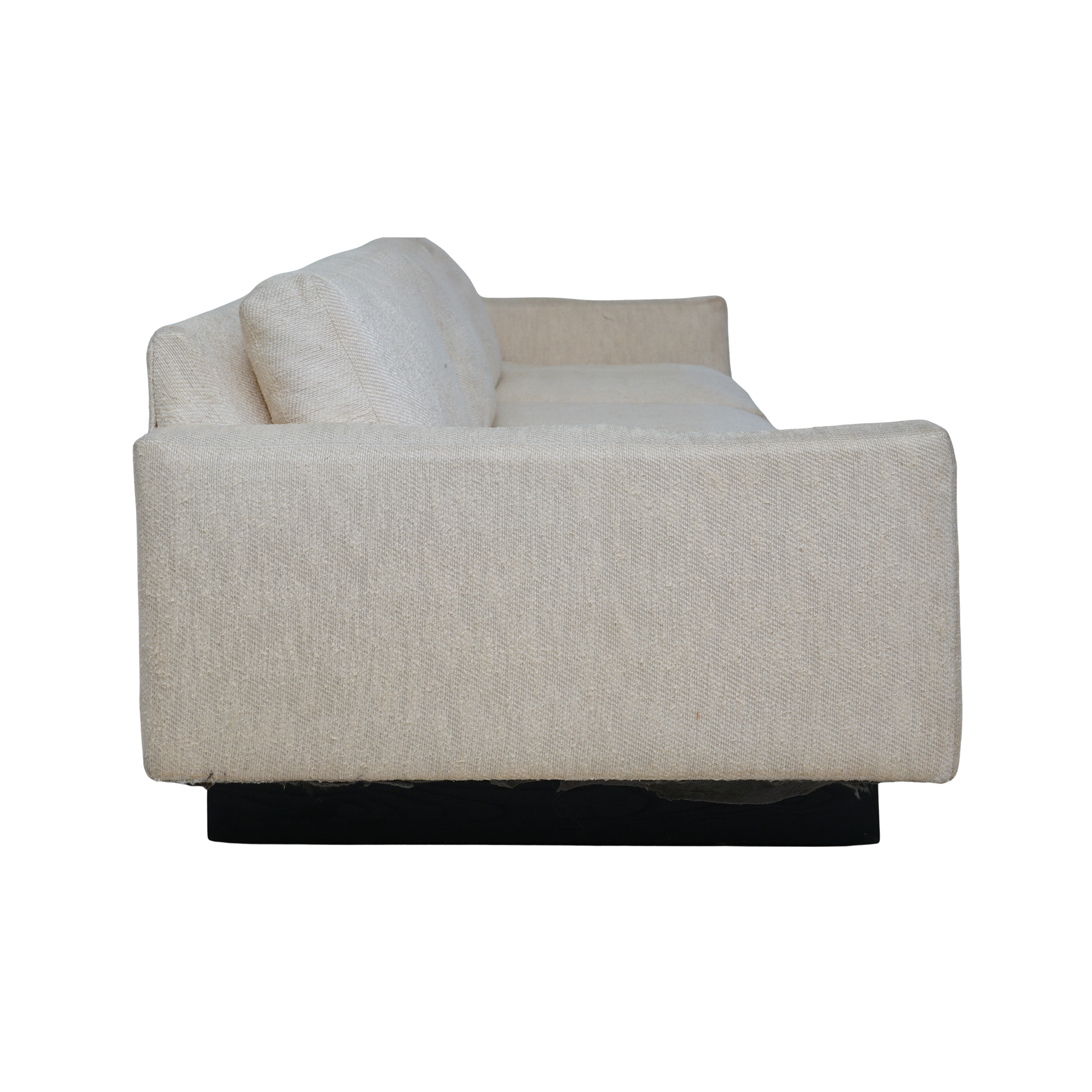 A classic 1970s silhouette with tailored restraint. This three-seat sofa features its original ivory tweed upholstery and a low-profile black plinth base—clean lines, deep seat, and just enough texture to hold the room.