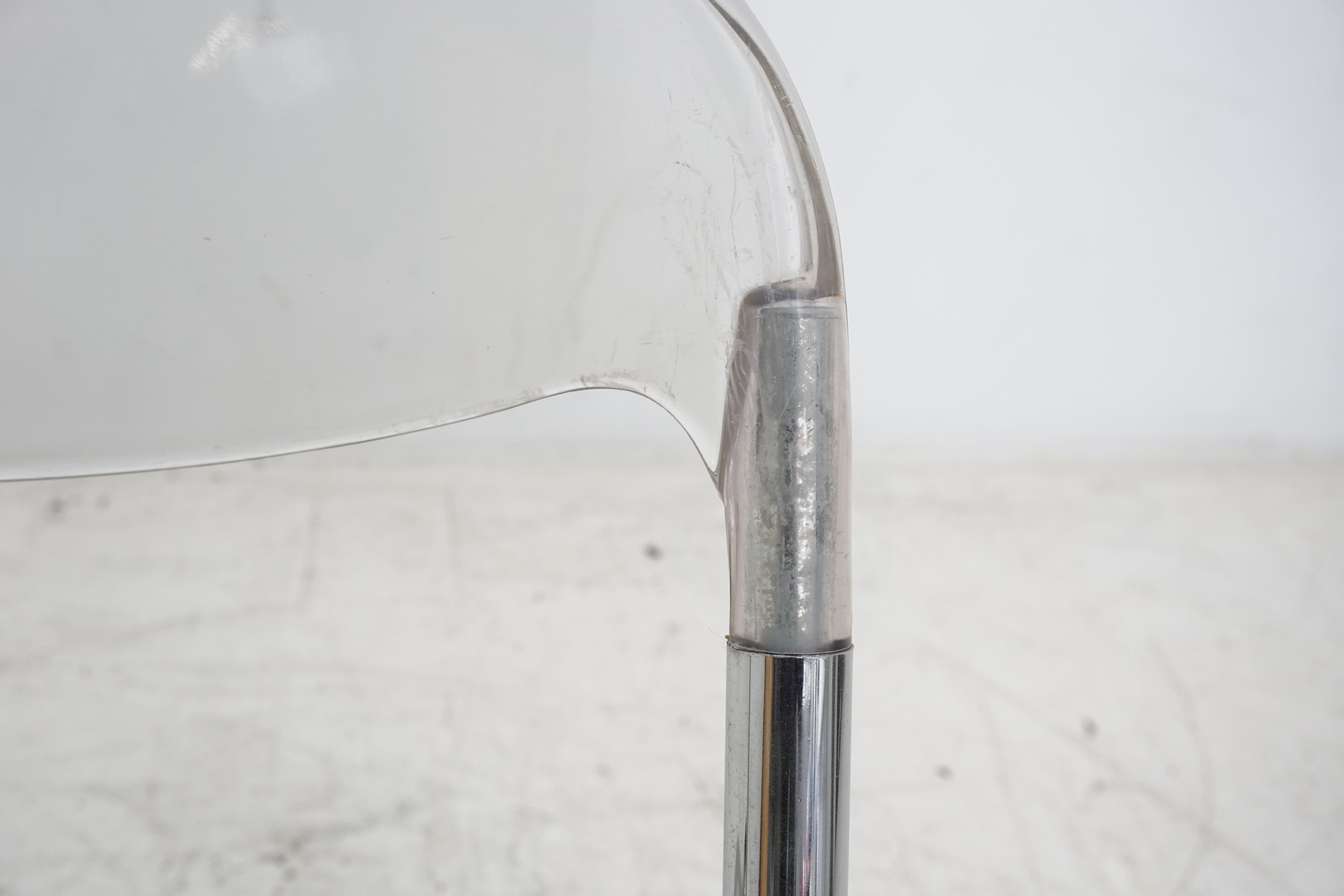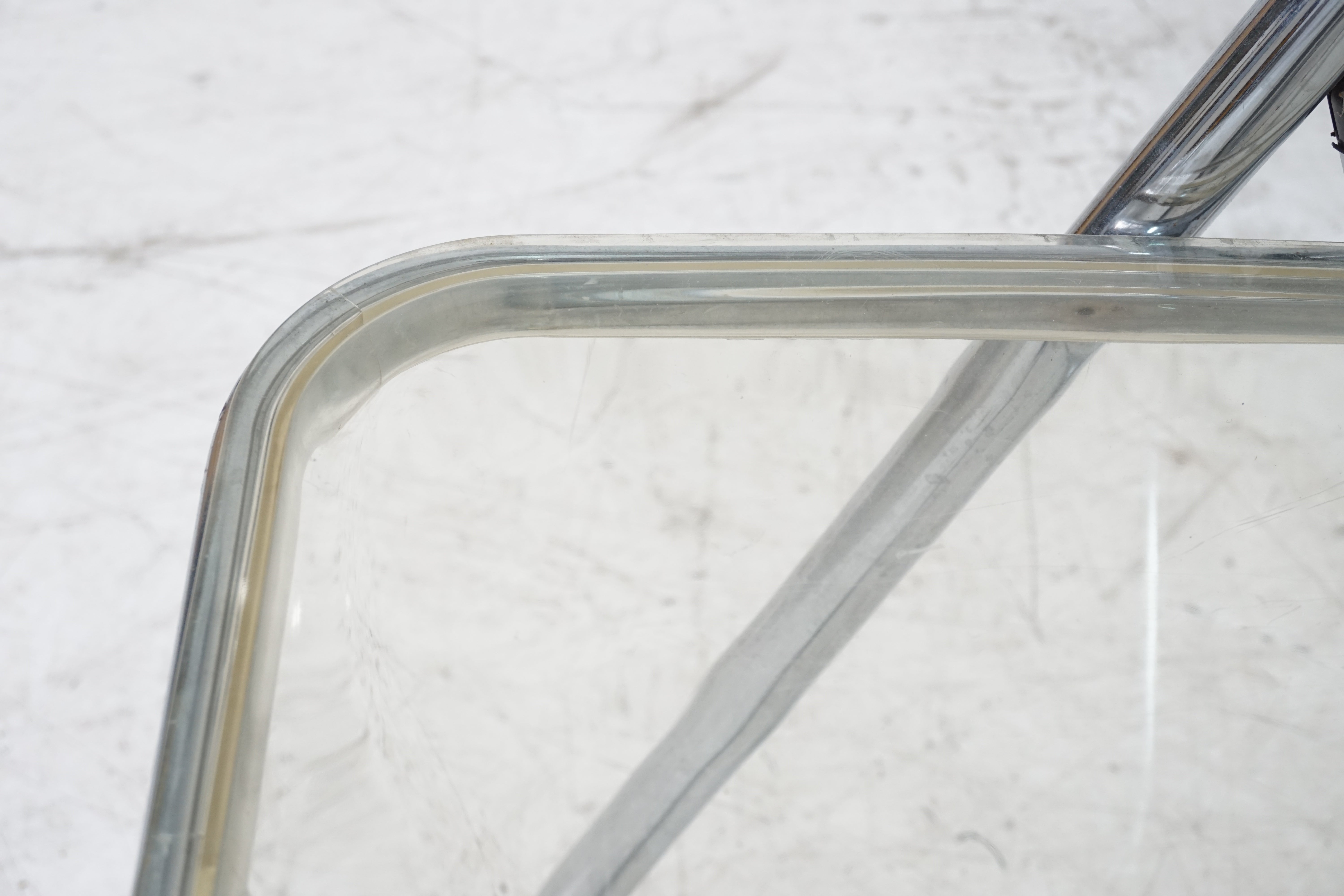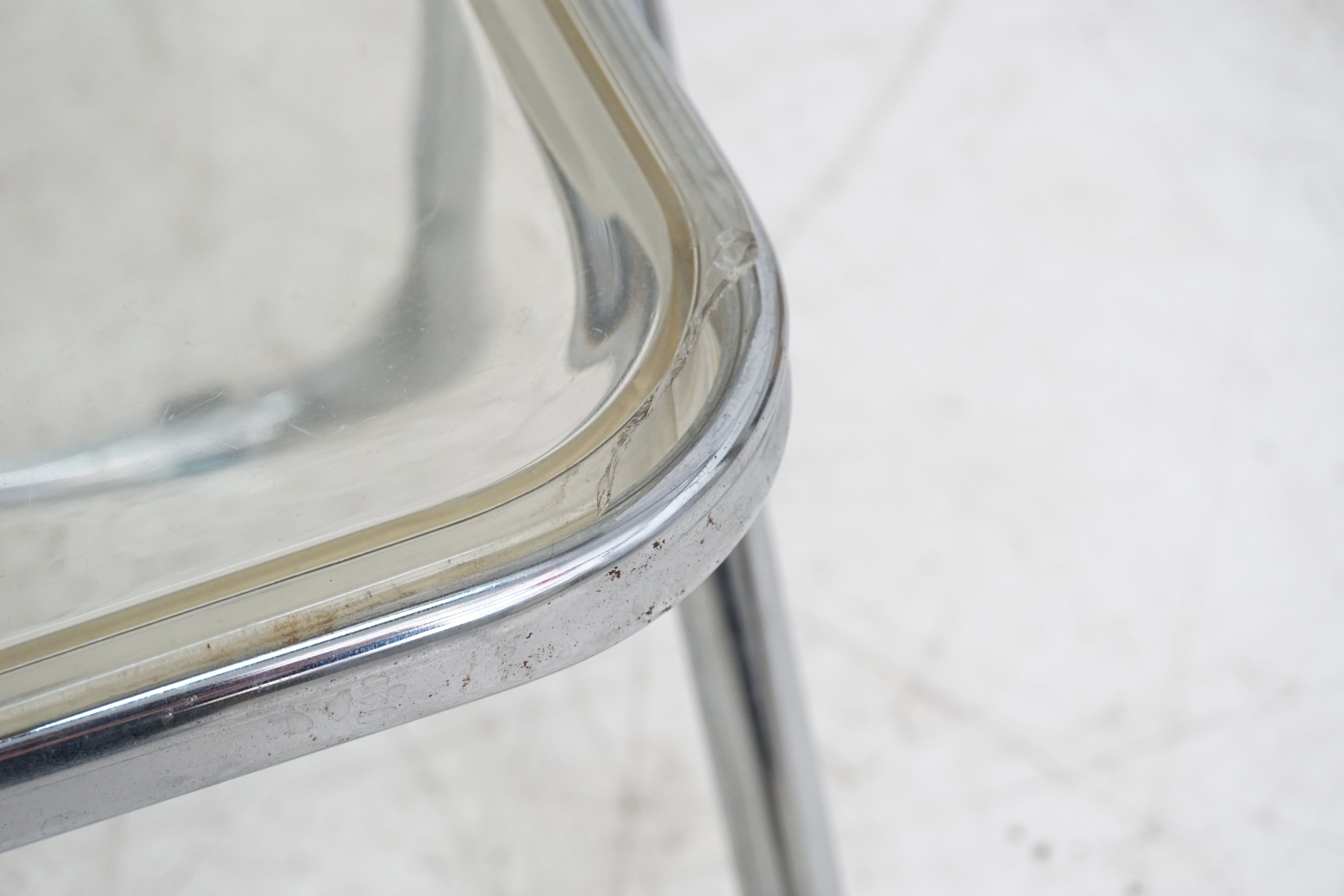 - Condition: Good; surface wear on chrome and lucite; very slight yellowing to seat; 1" broken corner edge