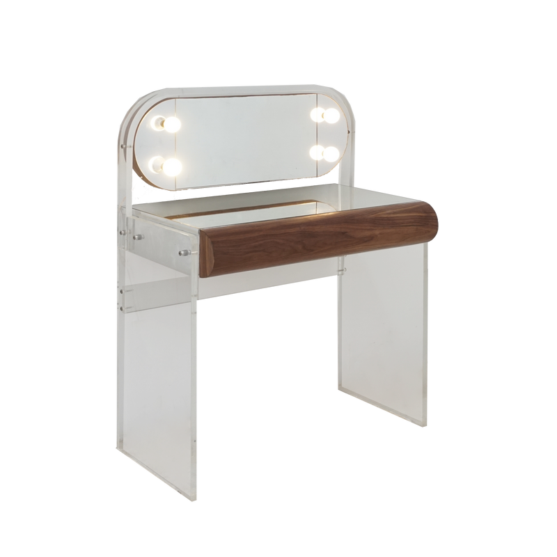 - Condition: Excellent; scratches to mirrored table top; areas of crazing on lucite