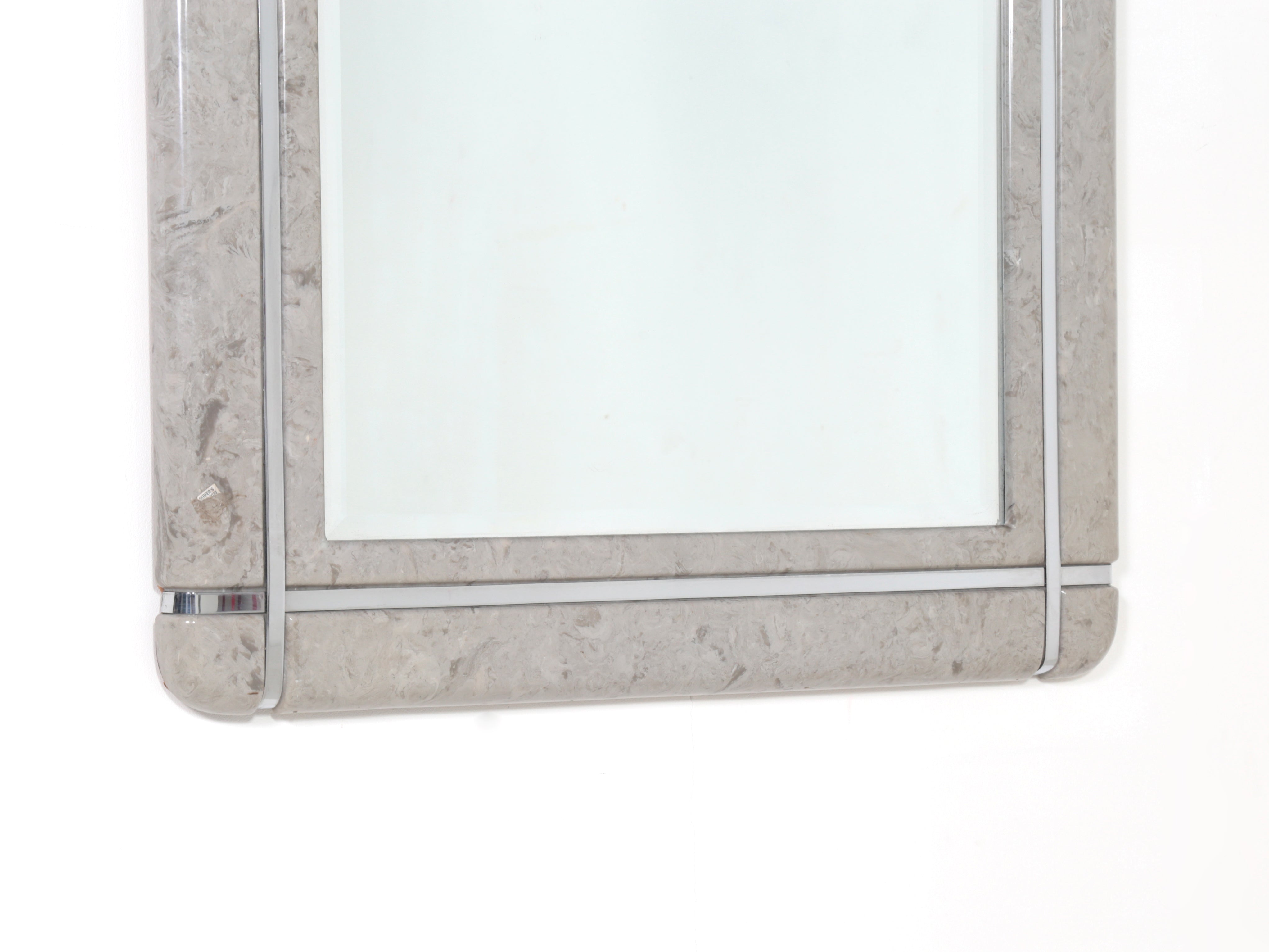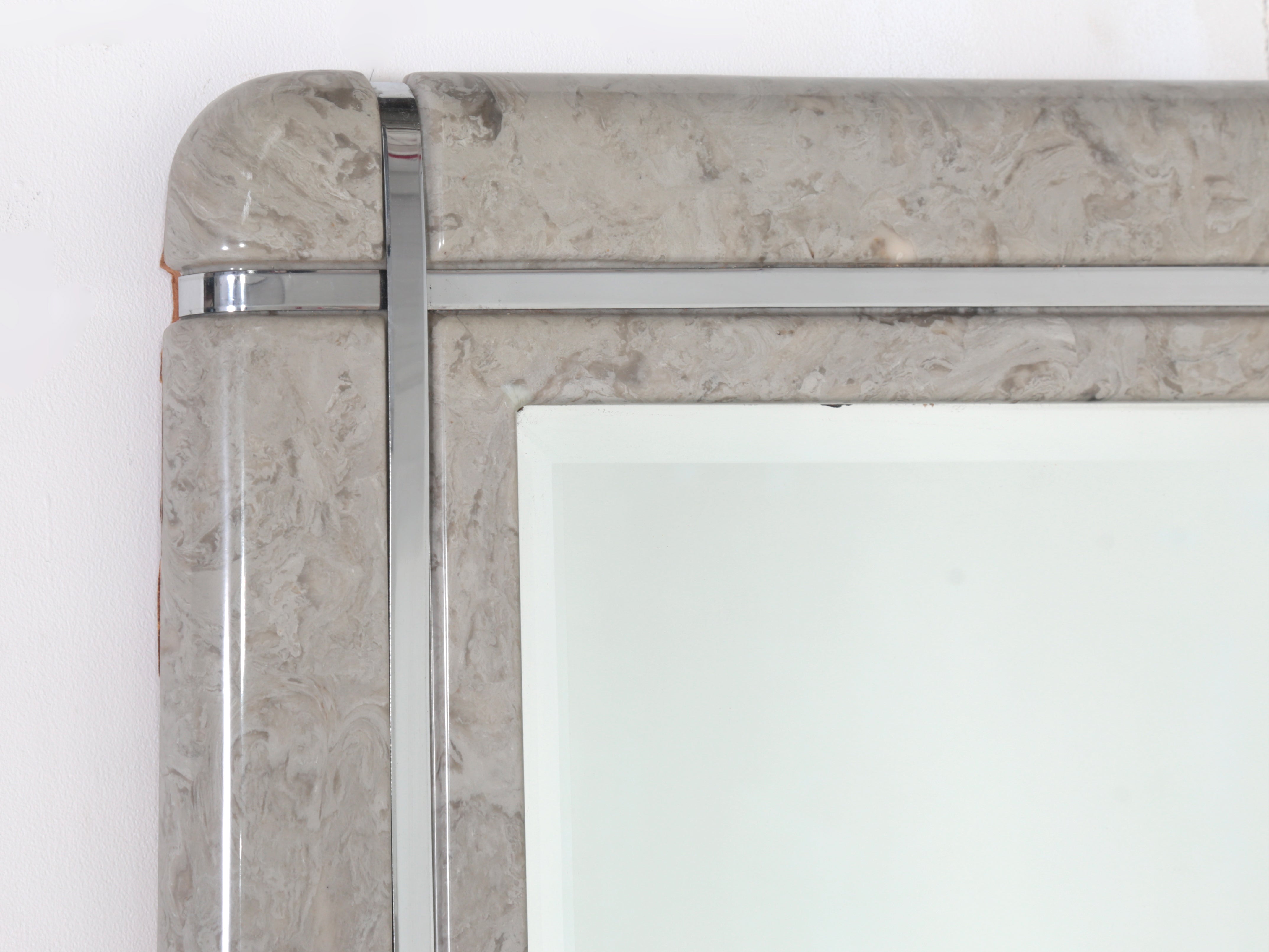 - Gray marble frame with chrome details in the style of Karl Springer circa 1980s
