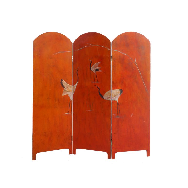 - Oil paint on wood, metal hardware
