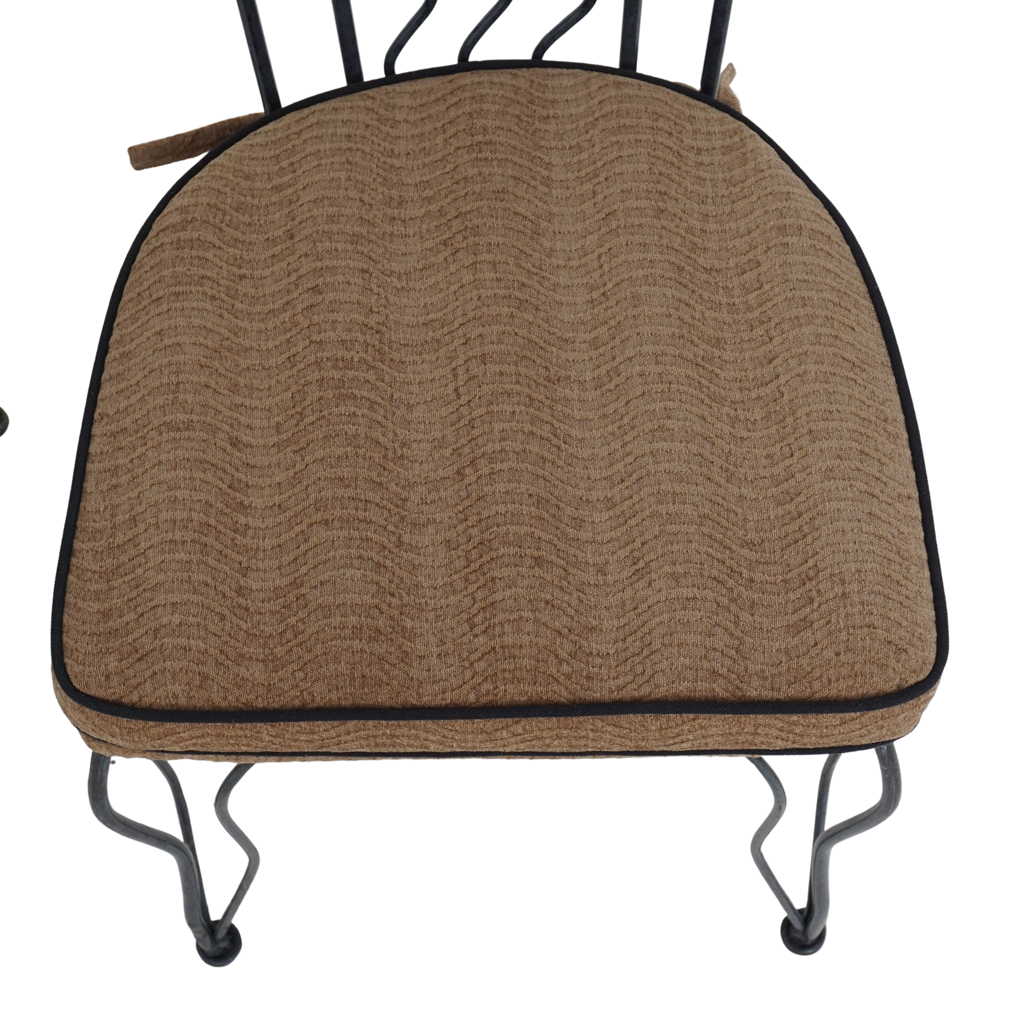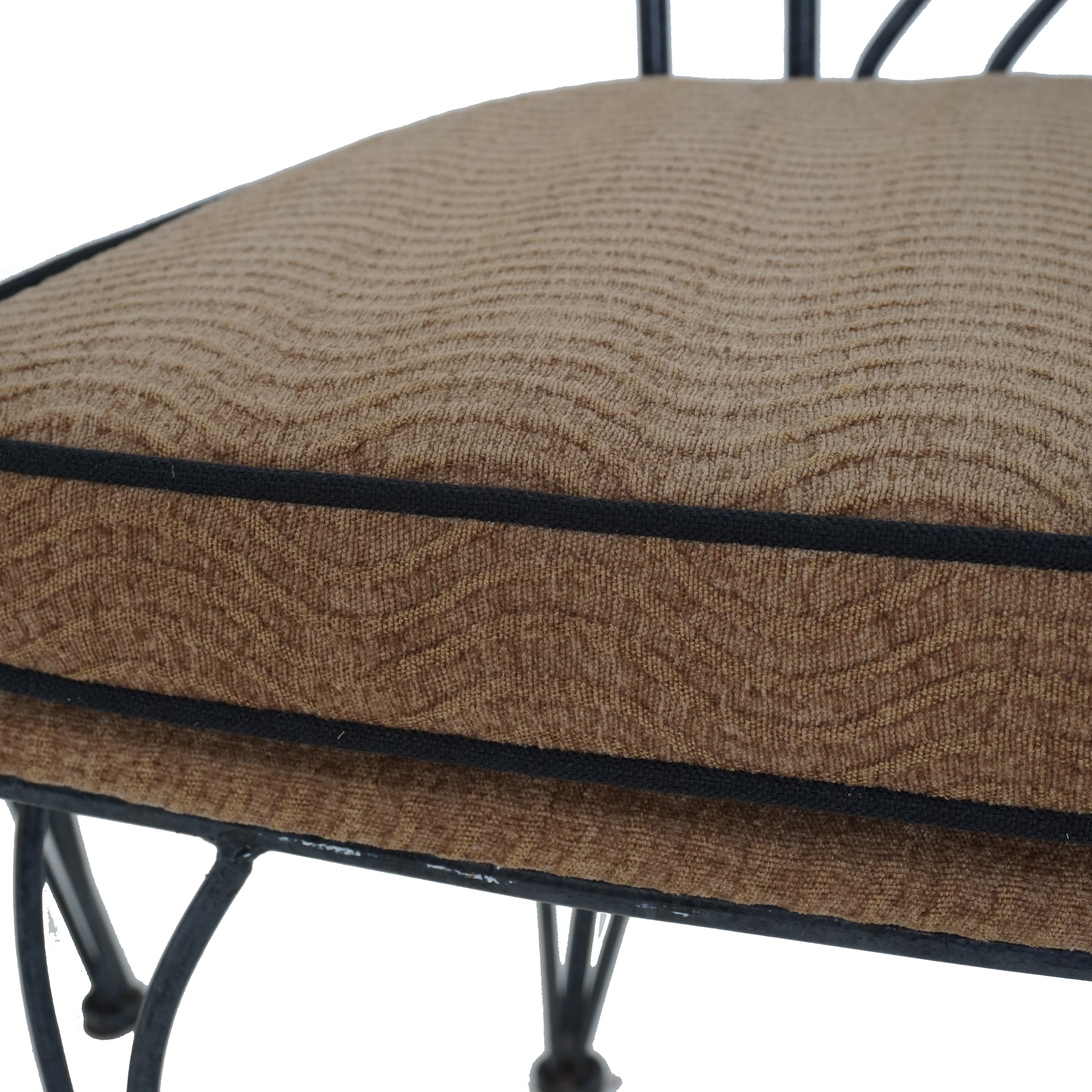 - Iron frame, newly upholstered seat cushions with contrast piping