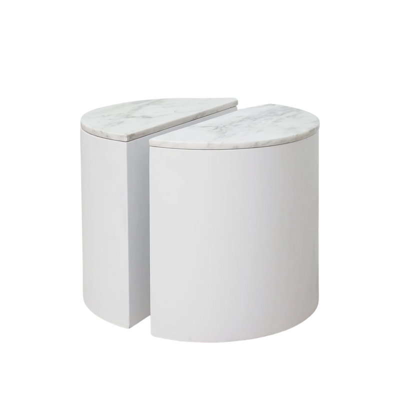 - Carrara marble, lacquer finish, particle board