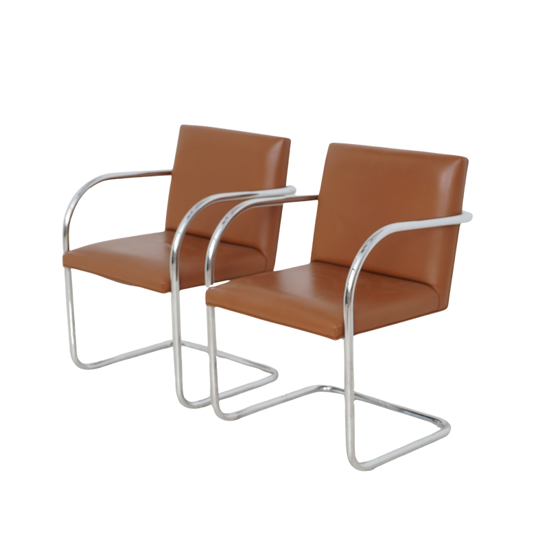 No legs, no problem. These cantilever chairs channel 1930s Bauhaus energy: steel-tube frames, floating seats, and just enough leather to keep it grown.