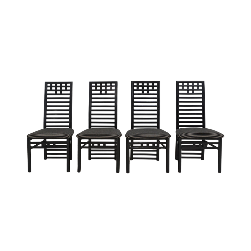 - Condition: Excellent; newly reupholstered; subtle imperfections, such as <1" divots or light markings to some chair frames