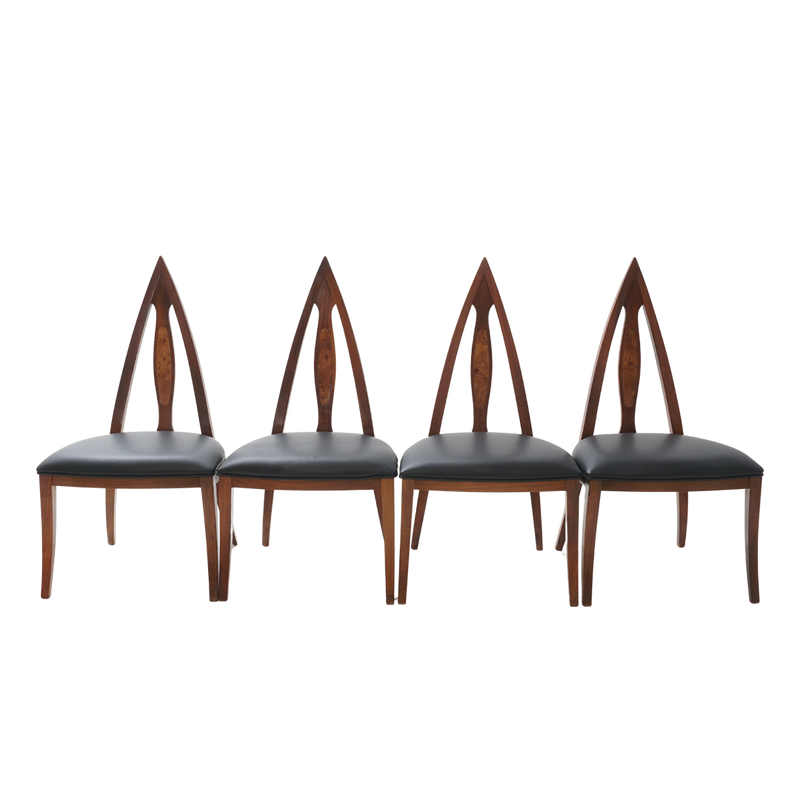 - Walnut, burlwood inlay, navy vinyl upholstery