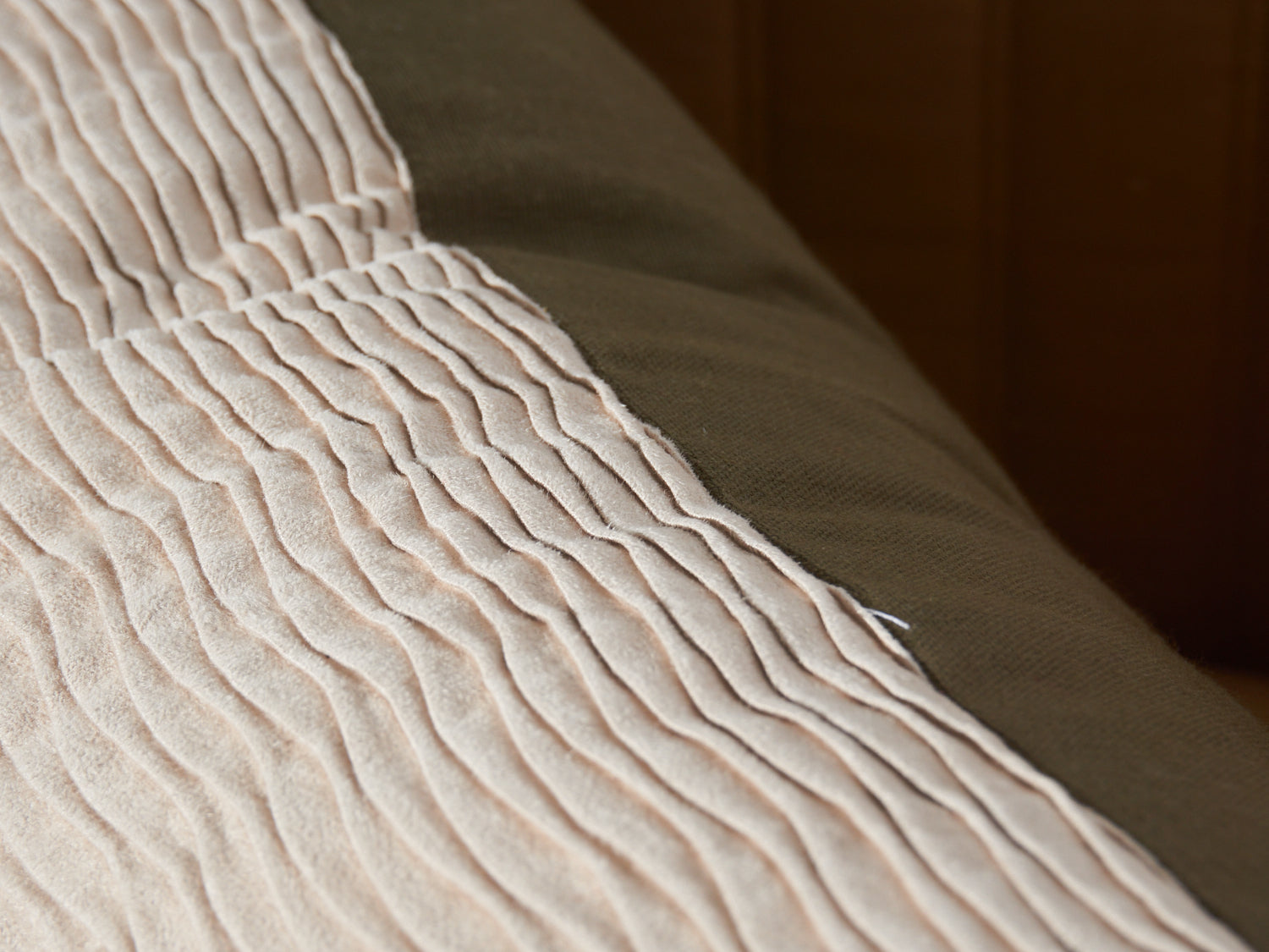 - Handmade textured suede decorative pillow cover with olive green cotton back