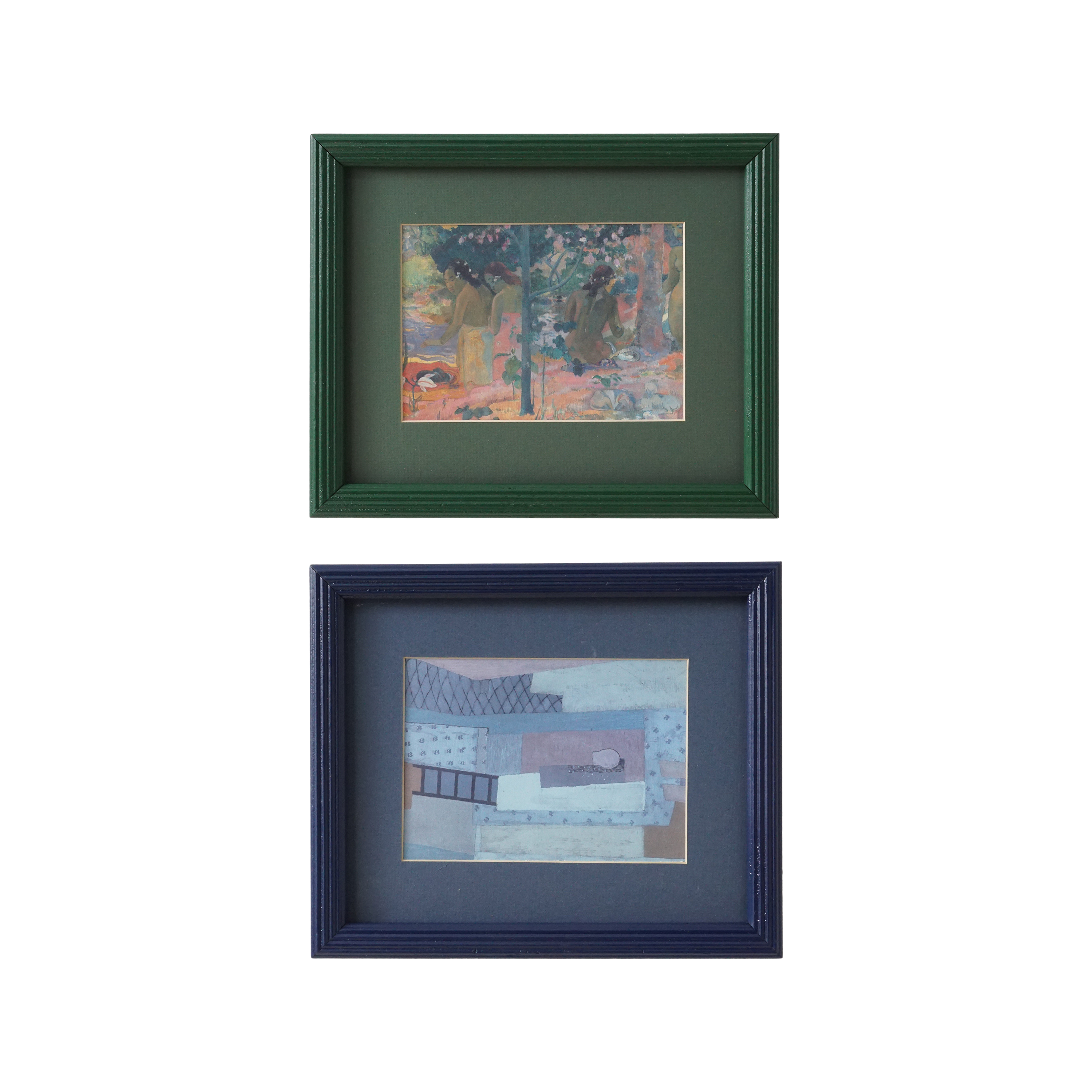 - 11"w, 9"h - The Bathers by Paul Gaugain and Sleepwalker by Jindřich Štyrský, digitally printed on FSC certified paper, set in vintage frames - Ready to hang - Wood, glass, paper - Condition: Excellent