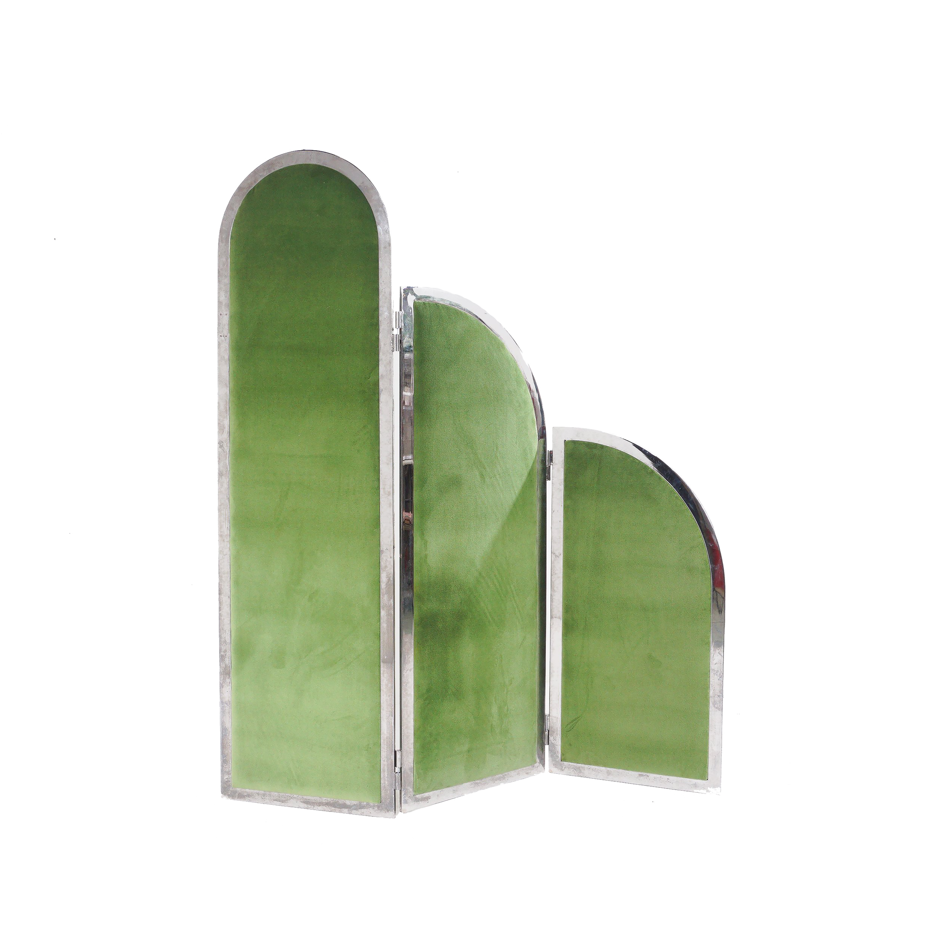 - Chrome frame with kelly green velvet upholstery
