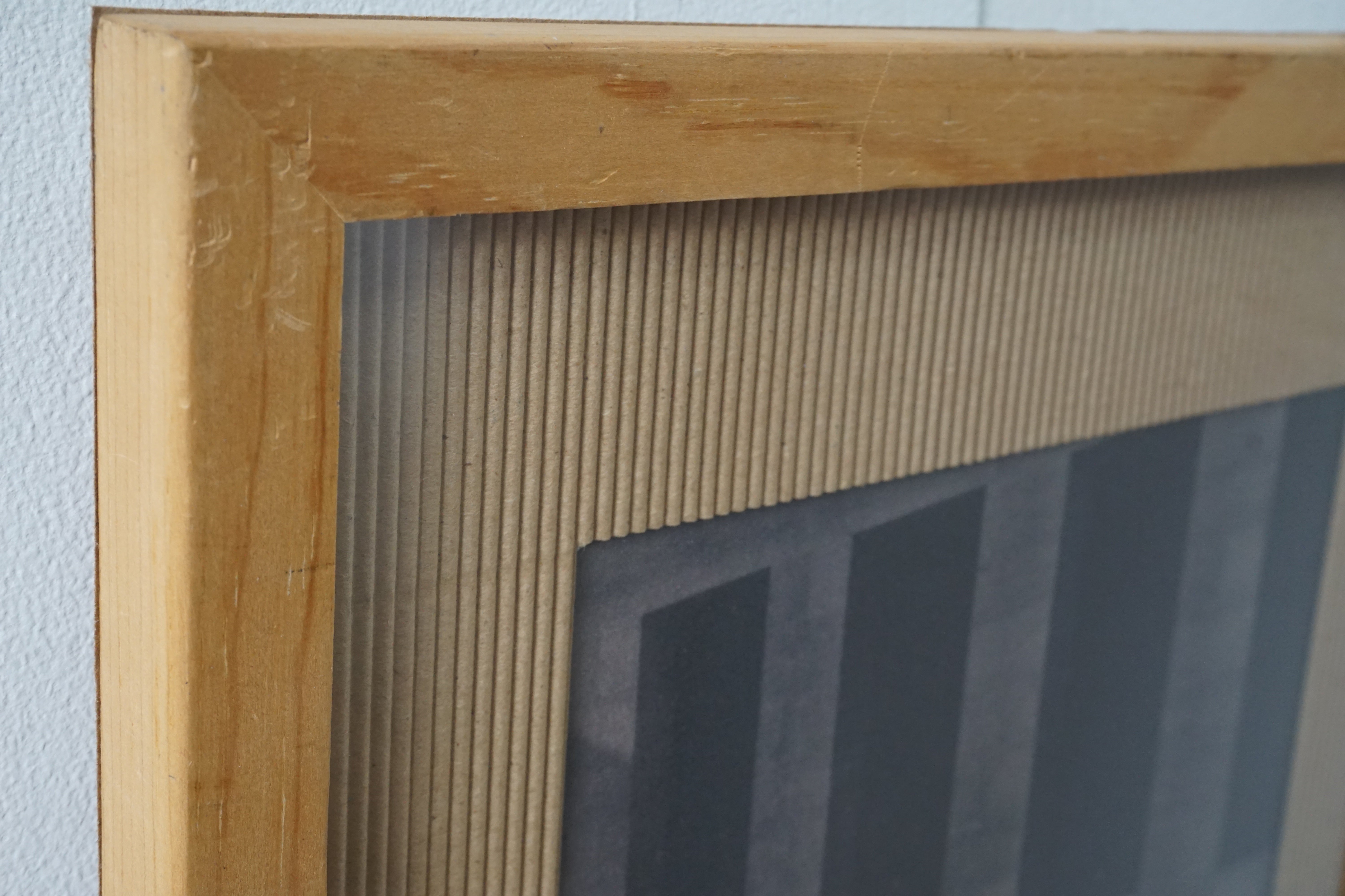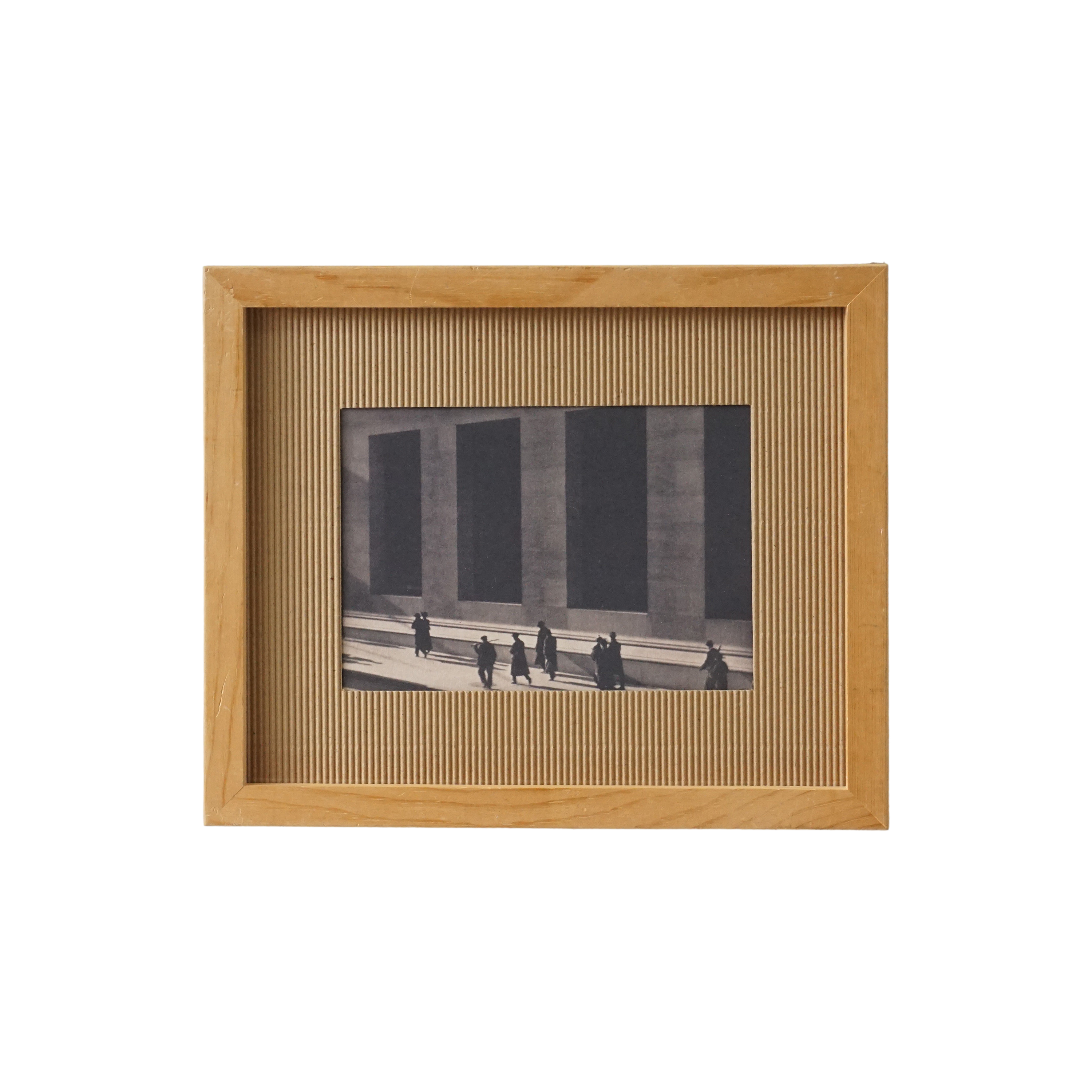 - 11"w, 9"h - Wall Street by Paul Strand, digitally printed on FSC certified paper, set in a vintage frame with corrugated mating - Ready to hang - Wood, glass, paper - Condition: Excellent